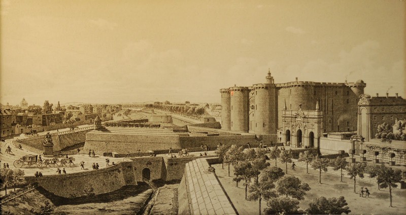 Firstly, if you look down at the paving stones of the square, around about Boulevard Henri IV, you will notice differently coloured cobbles, which mark out the original position of three of the Bastille’s towers. Meanwhile, on the platform of metro line 5, at the Bastille stop, you can see a considerable vestige of the defensive wall. Finally, the foundations of the ‘Tour de la Liberté’, rediscovered during the construction of metro line 1, were removed to the park of Henri Gallo, just in front of metro Sully Morland, where you can still find them today.