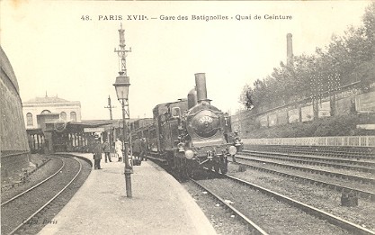 The small station Batignolles was built in 1854 on the occasion of the opening line of Auteuil (now occupied by the RER C). Following the construction of two new tracks, this one was demolished and rebuilt in 1912 on the other side of the bridge. It will become the Gare du Pont Cardinet in 1922.