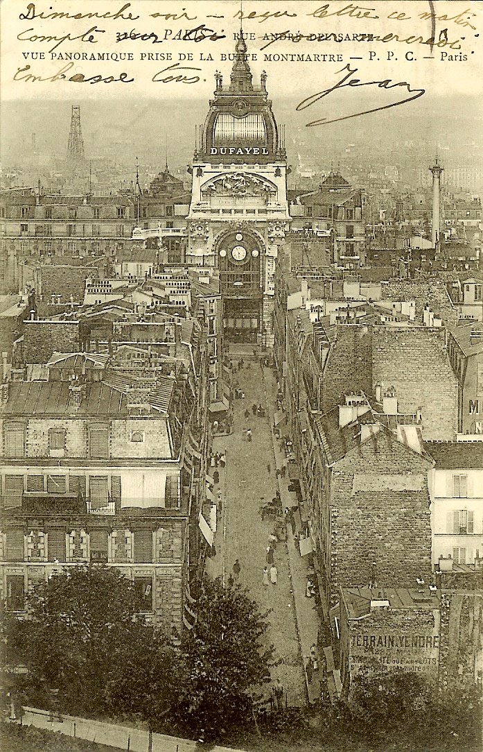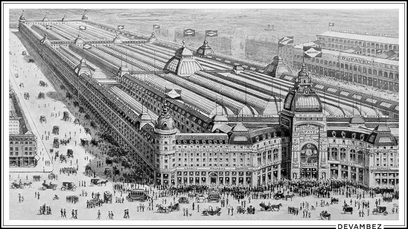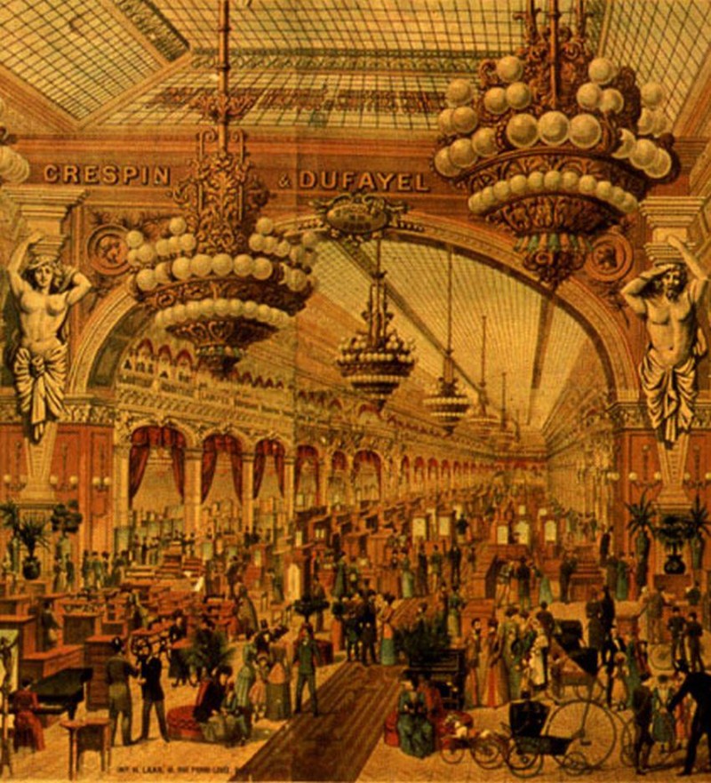 Department stores Dufayel, gigantic company, opened Boulevard Barbes in 1856. These galleries initiated under the guidance of Jules Andre Crespin were then called the “Palais de la Nouveauté”.