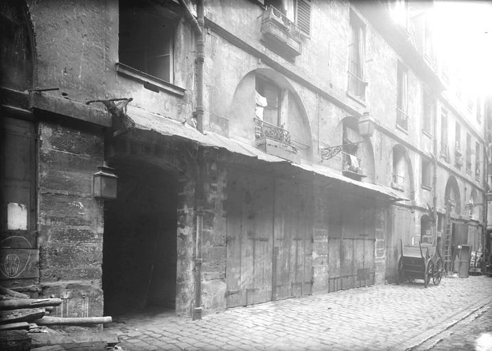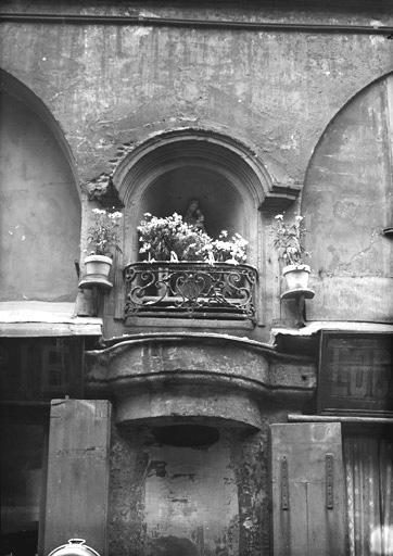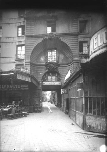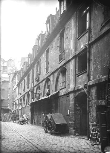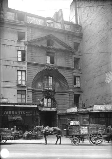 The Cours du Dragon escaped destruction during the construction of the Rue de Rennes in 1853 (see article here)  and the widening of Boulevard Saint Germain in 1866. It became a popular curiosity for Parisians during the 19th century, since it hinted at an architectural past before the Haussmann era. Though it was steadily abandoned over time, the Cours still housed 80 families by 1900. Even its categorisation as an historical monument in 1820, however, did not save it from demolition in 1934. The gateway and the statue were intended to be preserved, but the latter had become so brittle over time that it collapsed into pieces during the ‘dismantling’ process.