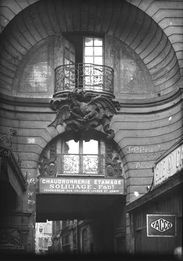La Cours du Dragon (The Dragon’s Court), which once stood at 50/54 Rue de Rennes, was constructed between 1730 and 1735. Back then, the passage opened onto the former Rue de l’Egout, opposite Rue Sainte Marguerite. A second exit onto what is today known as Rue de Dragon was knocked through at a later date. The location was celebrated for its monumental gateway, overhung with a statue of Saint Marguerite’s Dragon. It was a passage of stalls and workshops which housed steelworkers, coppersmiths, and lead and iron workshops.