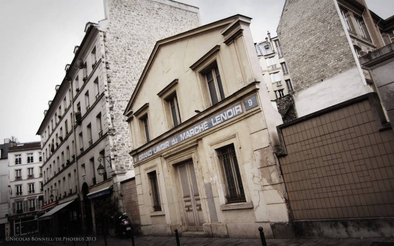 Le Grand Lavoir du Marché Lenoir – Construit 1830 au 9 rue de Cotte, ce type d’établissement était monnaie courante au début du XIXe siècle. Il aurait du être détruit en 1843 à l’occasion de la reconstruction du Marché d’Aligre, mais la protestation des riverains déboucha sur un compromis avec les promoteurs. Il fut décidée que la mythique façade soit préservée et déplacée d’une dizaine de mètre, au niveau du 3 de la rue. L’enseigne, inscrite au titre des Monuments Historique, à gardé son numéro original.
