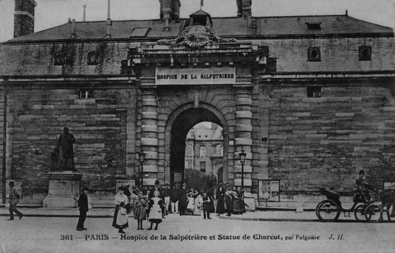 A cet endroit se trouvait autrefois la statue en bronze de Charcot, célèbre Neurologue du XIXe siècle représenté par le sculpteur Falguière en 1898. La présence de cette œuvre à cet endroit précis lui vaudra d’être rebaptisé “Concierge” par les étudiants. Ce monument sera comme beaucoup d’autres, fondu sous le régime de Vichy. au nom de la récupération par l’Occupant de tous les métaux non ferreux.