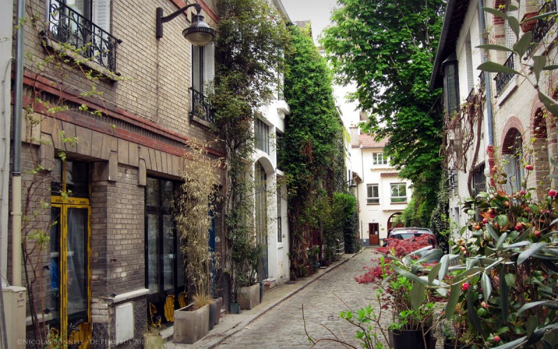 “Quel dommage que Paris n’ait pas été construit à la campagne” disait Tristan Bernard. La Villa Santos Dumont pourrait bien illustrer cette pensée. Construite en 1926, cette petite allée au charme provincial, prend sa source au 32 de la rue éponyme. Autrefois appelé Villa Chauvelot, elle ne prendra son nom définitif qu’en 1943 en l’honneur de l’aviateur Alberto Santos Dumont. Le secteur fut l’un des derniers refuges parisiens de Brassens suite à son départ de l’Impasse Florimond en 1968. Le poète habita jusqu’à sa mort la maison située au numéro 42 de la rue Santos Dumont.(et non l’Impasse).