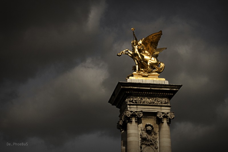 Le Pont Alexandre III fourmille de richesses visuelles pour celui qui saura s’y attarder. Construit à l’occasion de l’Exposition Universelle de 1900 il reste l’un des ultimes vestiges de l’évènement à l’image du Grand et du Petit Palais. Nicolas II en personne en posa la première pierre en 1896, afin de sceller cette amitié Franco Russe acquise bon gré mal gré durant le règne de son père Alexandre III – Construit grâce au procédé de caissons pressurisé Triger, on dénombra 29 accidents durant sa construction.