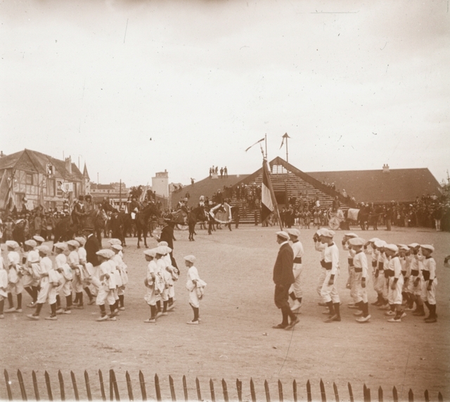 Défilé lors d’une fête sur le second site du patronage Saint-Joseph, rue Charles Fourier. De nos jours, le terrain appartient toujours à l’association et continue d’abriter la plupart de ses locaux et œuvres