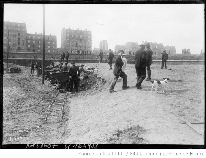 Déclarée d’inutilité publique en 1919, l’imposante enceinte de Thiers qui encerclait la ville depuis 1844, fut démolie au cours des années 20. Le premier coup de pioche fut donné Porte de Clignancourt par Monsieur Chassaigne-Goyon, président du conseil municipal. Au fil des années, les 94 bastions laissèrent (presque) tous la place à de nouveaux immeubles HBM offrant tout le confort moderne à un coût raisonnable.