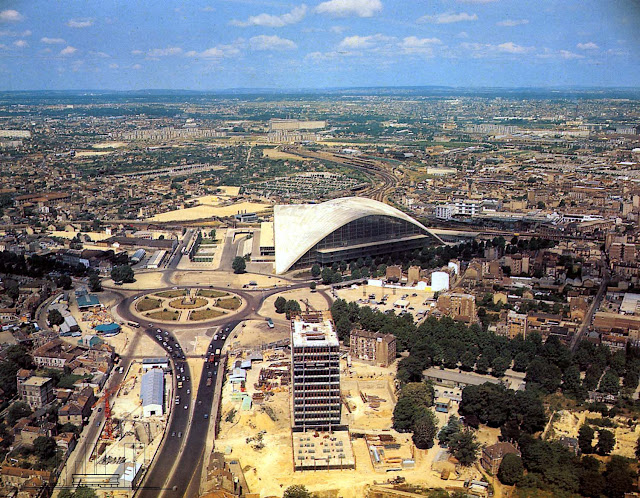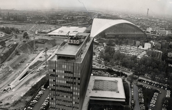 J’avais assisté à la construction du CNIT. La particularité était que les toupies devaient déverser leur béton sans s’arrêter 24h/24 et 7 jours/7 afin qu’il n’y ait pas de fissures. Les grèves étaient interdites. Dommage qu’il n’y ait pas, ici, de photos. Quant à la tour ESSO que l’on voyait depuis la sortie du tunnel de l’autoroute de l’ouest, le mot ESSO apparaissait grâce à certains stores qui étaient abaissés pour laisser l’éclairage sur les autres fenêtres. On lisait le mot sur toute la façade. Photos aussi? Philippe Vielliard