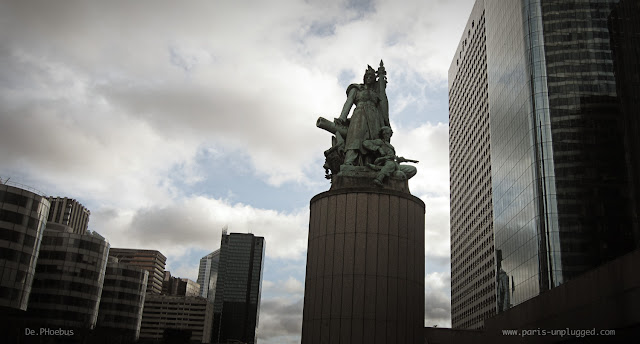 Rien ne subsiste de l’ancien quartier à l’exception de cette statue perdue au milieu des tours, seul vestige de ce que fut autrefois le rond point de la colline de Courbevoie.