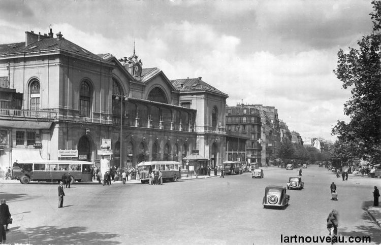 This second version of the Montparnasse train station was built in 1852. It replaced another building too small for the growing traffic. This station was located Place de Rennes, (current Place of June 18, 1940). Serving the west of France, the Montparnasse district soon became the stronghold of many Bretons (from Bretagne) settled in Paris. This tradition is still visible today through the many pancake houses that dot the area.