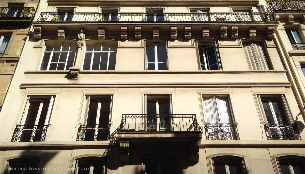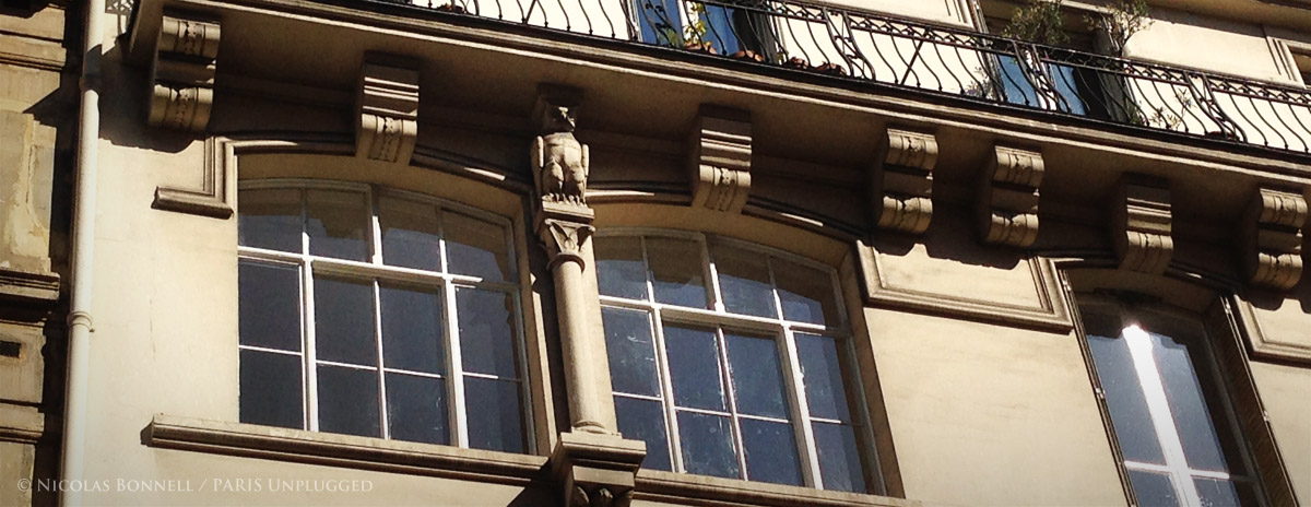 68 rue Condorcet, ne manquez pas de jeter un œil vers les hauteurs de la corniche depuis lesquelles un hibou vous observe.Perché en son sommet, cet animal inattendu est en réalité un message codé, un rébus destiné aux initiés comme le XIXe siècle savait en produire. Cet immeuble fut dessiné en 1862 par Viollet le Duc. Cet architecte très en vogue venait d’achever la restauration ô combien controversée de Notre Dame de Paris. L’écrasante majorité de son œuvre s’inscrit dans une mouvance néo gothique flamboyante. Cet immeuble surprend donc par son étonnante sobriété. La construction achevée, son concepteur y installera son domicile et cabinet de travail jusqu’à son décès en 1879. Depuis lors, ce «Grand Duc», étonnante signature de pierre, nous rappelle la présence en ces murs de cet homme à qui notre patrimoine doit tant.