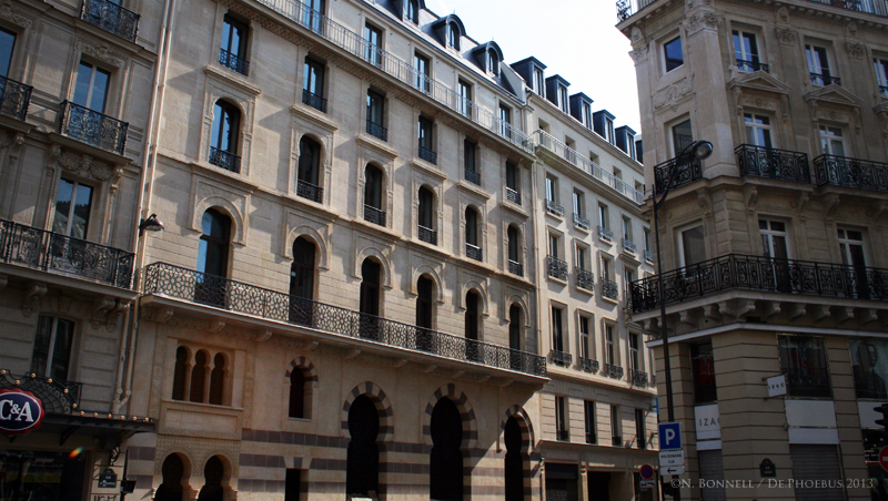 Au 18 rue des Mathurins, ce bel immeuble de style oriental nous rappelle l’existence d’un des établissements de bains les plus prisés de la Capitale.